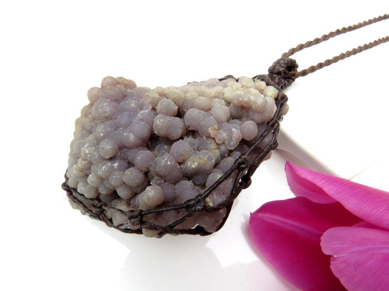 If you have been looking for that amazing statement piece - well, here it is ! This listing is for a spectacular Grape Agate macramé necklace. Grape Agate is an incredible wonder that resembles sweet bunches of purple grapes💜 So many super lovable bubbly purple crystals - a very RARE find from one location in Indonesia. Also known as Botryoidal Chalcedony with Druzy Quartz. ✨