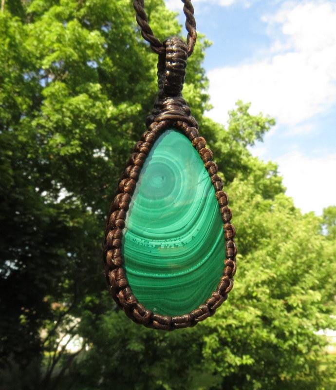 Beautiful Malachite macrame necklace - Its distinctive concentric layers, "eyes," banding and patterns- make it truly one of the most unique gemstones ! This piece is a vibrant green with very nice patterns An excellent gemstone to support the heart chakra!💚