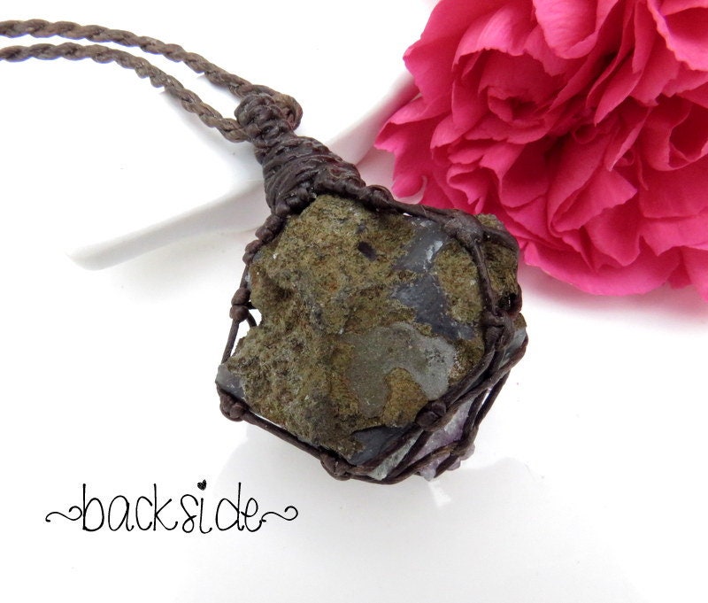 Materials: amethyst, stones, gemstones, semiprecious stones, waxed cord.