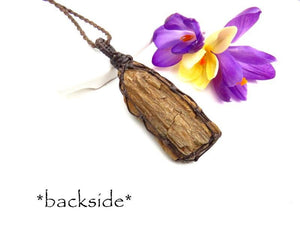 A rare find ! This listing is for a Petrified Wood macrame necklace ! This material is from the triassic period - 200- 250 million years ago! Feels very nice in your hand - grounding yet uplifting - has a touch of twinkle when the sun hits it ✨