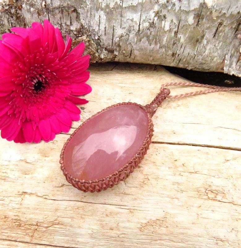 💗SELF-LOVE & COMPASSION 💗 High quality Rose Quartz macrame necklace - This is a beautiful, deep rosy pink Rose Quartz crystal with a gorgeous puffy oval shape. An important stone for helping us to raise our vibrations of love and compassion - for ourselves and others ~ : ) A beautiful description of the stone's properties will be included 🌹